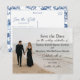 ¿Buscas una forma elegante de anunciar tu boda? Esta tarjeta postal de "save-the-date" de foto personalizable te permite subir tu foto de compromiso favorita mientras mantiene el diseño pulido y moderno. Con una elegante colocación de tipos que se adapta a la ropa oscura y los entornos de playa, el reverso muestra un patrón atemporal azul de chinoiserie para un acabado clásico. Perfecta para bodas en la costa, parejas modernas o cualquiera que desee un toque refinado y personal.