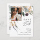 Diseñamos esta tarjeta postal de "Save The Date" con foto de escritura floral blanca para completar tu boda rústica tropical oscura. Con su vegetación acuarela bohemio y sus flores modernas boho de invierno, incluyendo protea, dalia y loto seco, el diseño seguramente resaltará tu tema minimalista y sombrío de verde y blanco. Cambia el texto y agrega una foto para hacerlo tuyo. Además, asegúrate de revisar el resto de la colección para encontrar artículos coordinados que unirán toda tu boda. https://www.zazzle.com/collections/white_floral_collection-119896729923706651