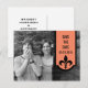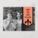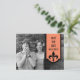 Tarjeta postal moderna y sencilla de anuncio de fecha de Fleur De Lis en color naranja nectarina con un banner de borde escalonado adornado con un floreo chic de damasco. Esta elegante tarjeta postal de anuncio de fecha es perfecta para anunciar su boda elegante. Fácil de personalizar, simplemente agregue una foto de una pareja adorable y los detalles de su boda en los campos de texto proporcionados. Haga clic en "Personalizar" para encontrar más opciones de personalización.