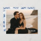 ¿Buscas una forma elegante de anunciar tu boda? Esta tarjeta postal de "save-the-date" personalizable te permite subir tu foto de compromiso favorita mientras mantiene el diseño pulido y moderno. Con una elegante colocación de tipos que se adapta a la ropa oscura y a entornos de playa, el reverso muestra un patrón atemporal azul de chinoiserie para un acabado clásico. Perfecta para bodas en la costa, parejas modernas o cualquiera que desee un toque refinado y personal.