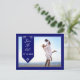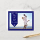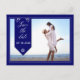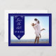 Anuncia tu compromiso, boda o aniversario con una tarjeta postal de "Guardar la Fecha" con borde azul real y texto blanco, elementos florales blancos.