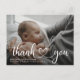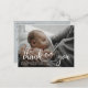 Tarjeta postal moderna de anuncio de nacimiento de bebé con foto. Diseño con guión de agradecimiento, foto única del bebé, estadísticas de nacimiento, fecha y nombre en la parte frontal. Personalizable con otra foto y tu mensaje de agradecimiento en la parte trasera.