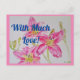 Tarjeta postal floral de aquarela con lirios rosados y amor. Un diseño muy bonito para cualquiera a quien amas. Diseñado a partir de mi aquarela original.
