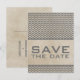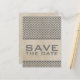 Moderno con un toque vintage es esta Tarjeta postal de aviso de boda con estampado de Chevron Chic. Este diseño presenta un fondo con aspecto de papel antiguo y un patrón de Chevron en zig-zag en gris oscuro. Fácil de personalizar, simplemente agregue los detalles de su boda. Haga clic en "Personalizar" para encontrar más opciones de personalización.