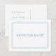 Sencilla y elegante Tarjeta postal de aviso de fecha de boda con esquinas redondeadas y borde geométrico circular en azul. Este diseño de aviso de boda moderno y chic es perfecto para anunciar tu boda sencilla y sofisticada. Fácil de personalizar, simplemente agrega los detalles de tu boda en los campos de texto proporcionados. Haz clic en "Personalizar" para encontrar más opciones de personalización.
