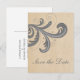 Tarjeta postal de aviso de fecha elegante y dulce con espirales con estilo que presenta un hermoso fondo de aspecto de papel kraft y un diseño de espiral floreado en gris. Esta tarjeta postal de aviso de fecha moderna y rústica es fácil de personalizar con los detalles de su boda. Haga clic en "Personalizar" para encontrar más opciones de personalización.