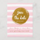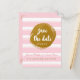 Tarjeta postal de aviso de fecha de Pink Striped & Gold Foil. Artículos coincidentes disponibles.