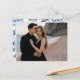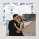 ¿Buscas una forma elegante de anunciar tu boda? Esta tarjeta postal de guardar la fecha con foto personalizable te permite subir tu foto de compromiso favorita mientras mantiene el diseño pulido y moderno. Con una elegante colocación de tipos que se adapta a la ropa más oscura y a entornos de playa, el reverso muestra un patrón atemporal azul de chinoiserie para un acabado clásico. Perfecta para bodas en la costa, parejas modernas o cualquier persona que desee un toque refinado y personal.