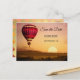 Una encantadora tarjeta postal de Aviso de carácter romántico que presenta un globo aerostático sobre un paisaje soñador en la puesta del sol. El reverso muestra un diseño a cuadros con efectos impresos en dorado. Si no lo necesita, puede eliminarlo.