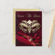 Nuestra Tarjeta Postal de Aviso de Máscara Dorada con Joya Roja es una hermosa manera de anunciar las buenas noticias!