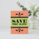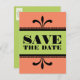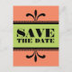 Tarjeta postal de aviso elegante y sofisticada Fancy Art Deco en naranja nectarina y verde brotes tiernos con un florecimiento art déco y borde punteado y un esquema de color de dos tonos. Este diseño moderno es perfecto para anunciar una boda con tema deco. Fácil de personalizar, simplemente agregue los detalles de su boda en los campos de texto proporcionados. Haga clic en "Personalizar" para encontrar opciones de personalización adicionales.