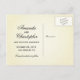 Una foto de tamaño completo de la feliz pareja en la parte delantera está acompañada por un elegante banner negro y texto blanco que pide a los invitados que guarden la fecha. En la parte posterior, un fondo vintage añade sofisticación y más espacio para la información de su boda.