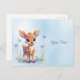 Tarjeta postal de bebé ciervo con flores azules a
