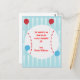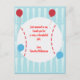 Esta divertida tarjeta de correo de béisbol es perfecta para enviar un agradecimiento a sus invitados por venir. La tarjeta postal tiene un patrón de bate de béisbol en el fondo y globos en primer plano.