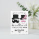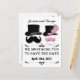 En el diseño gráfico se presentan un bigote negro, bigote rosa, sombrero de copa negro, sombrero de copa rosa que incluye una flor y plumas. También incluye un collar de perlas. El texto dice "Nosotros bigoteamos que guardes la fecha". Ideal para una fiesta de bigotes, boda, aniversario, ensayo, recaudación de fondos, ducha o cualquier evento especial.