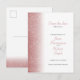 Diseño simple y elegante de tarjeta de Guardar la Fecha de boda con purpurina de oro rosa. Personalice con sus detalles para que sus invitados sepan sobre su día especial.