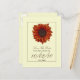 Una tarjeta postal de 'guárdalo' con un fondo de color blanco apagado. En la parte superior presenta una imagen de un girasol naranja. Personaliza con tu información en marrón oscuro y negro. Busca invitaciones a juego y más en Jill's Paperie.
