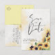 Anuncia la fecha de tu boda con esta elegante tarjeta postal floral de girasoles en acuarela. Una mezcla de caligrafía moderna y arte de estilo vintage con hermosos tonos amarillos. Todo el texto se puede alterar y personalizar excepto el título "Save the Date" en la parte frontal. Más invitaciones de boda de estilo vintage están disponibles en nuestra tienda.