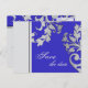 Guarde la fecha de su boda con esta tarjeta postal de guardar la fecha floral moteada de azul real y plateado. Este diseño está en formato de plantilla y presenta un fondo sólido con un banner a lo largo del lado izquierdo del diseño y florecientes remolinos florales y frondosos plateados. Envíe esta tarjeta postal de guardar la fecha económica y fácil a todos sus familiares y amigos.