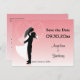 Este diseño presenta un fondo rosa degradado con una silueta de una novia y un novio. Hay un grupo de estrellas en forma de corazón detrás de la feliz pareja. El reverso de este elegante diseño tiene un simple fondo degradado. Hay mucho texto personalizable tanto en la parte delantera como trasera de esta tarjeta postal para que puedas personalizar convenientemente con tu propia información. Mostrado aquí como un recordatorio de "Save The Date" de boda, este versátil diseño también se puede personalizar para duchas de boda o aniversarios. ¡Tenemos este diseño disponible en una variedad de colores y en una variedad de productos coincidentes!