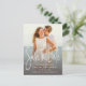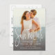 Elegante y chic tarjeta postal para guardar la fecha que incluye su fotografía en la parte frontal enmarcada en un gran texto blanco Guarde la Fecha, escrito en una hermosa caligrafía. Sus nombres, fecha de la boda y ubicación siguen. La parte trasera proporciona más información sobre su boda. Muy fácil de personalizar y adaptar para su mensaje especial.