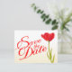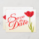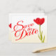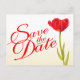 Hermosa tarjeta de invitación informal de boda con un solo tulipán rojo brillante sobre fondo crema rústico. Personalice esta invitación con sus propias palabras. Invitación simple moderna y romántica, ideal para una boda de primavera o de tulipanes. Diseño y pintura de tulipán en acuarela de arte fino por Sarah Trett.
