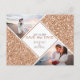 Hermosa tarjeta moderna de guardar la fecha con brillo y dos espacios para tus fotos. Edita esta tarjeta de boda con tu información y personalízala con opciones de fuente y color de fuente.