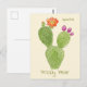 Pintura en acuarela de cactus de pera espinosa en una tarjeta postal.