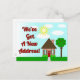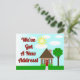 Una tarjeta postal de casa y árbol de arte naíf linda que presenta una casa dibujada en un estilo de "escuela primaria" para contarles a amigos y familiares que te mudaste.