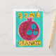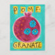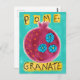 Esta divertida y colorida granada presenta acentos de puntos naranjas lindos, flores divertidas azules y texto dibujado a mano amarillo.