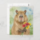 Tarjeta postal de carpincho lindo con flores para Postcrossing