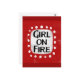 "Chica en Llamas" es un divertido diseño de texto con una forma de acento blanco rodeada de puntos texturizados caprichosos blancos.