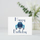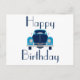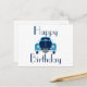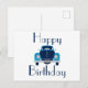 Tarjeta postal de coche azul de cumpleaños feliz
