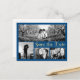 Personalice esta elegante tarjeta postal de boda moderna horizontal para guardar la fecha diseñada con texto de letra script encantadora en falso dorado sobre azul marino. Tenga en cuenta que el texto dorado es impresión en color y no es una lámina de oro real. Reemplace las cuatro imágenes de la plantilla del collage con sus 4 fotos favoritas. Una de las imágenes es una foto panorámica horizontal ancha y las otras tres son más pequeñas. Para obtener los mejores resultados, use fotos de alta resolución. También cambie toda la información de la plantilla en ambos lados con la suya. Este diseño tiene una redacción: "¡Nos casamos! (Con su fecha de matrimonio) Y nos encantaría que guardes la fecha para poder compartir nuestro día especial. Invitación formal a seguir." puede cambiar las palabras con las suyas.