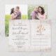 Guardar la fecha con un collage de fotos personalizado en estilo de granja elegante. Elegantes rosas de jardín en estilo shabby chic dan un toque cálido de rubor y coral para una celebración de boda campestre. Completo con fondo de madera rústica, este diseño es perfecto para una reunión en el campo, cottage o incluso en el jardín.