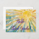 Agilizar el comienzo del año escolar con esta cautivadora postal de acuarela que dice "Hola tercer grado". El cuadro capta la esencia de un sol alegre, con sus rayos de luz que recorren el cielo con gracia. El estilo artístico, caprichoso e informal, exuda alegría e indiferencia, mientras que los colores vivos y suaves crean una atmósfera de calidez y tranquilidad. Esta obra de arte, con su aura ascendente y apaciguadora, invita a la armonía y al equilibrio, añadiendo un toque de cordial saludo a la escena. Perfecto para dar la bienvenida a los estudiantes de vuelta a la escuela o para que los profesores envíen una nota alegre, esta postal se puede personalizar para acomodar cualquier nivel de grado.