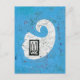Una divertida ilustración de conejo sobre un fondo azul con grandes remolinos blancos, todo infundido con una textura profunda.