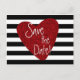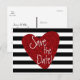 Tarjeta postal de corazón de purpurina roja a rayas negras y blancas. Personaliza con cualquier texto para cualquier evento.