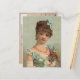 Tarjeta postal de época con una dama encantadora en la parte delantera