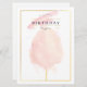 Elegante y sofisticado marco dorado con un algodón de azúcar de acuarela rosa y pinceladas de pintura rosa con un feliz cumpleaños.