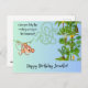 Los niños pueden divertirse ayudando al mono a balancearse hacia los plátanos en este divertido rompecabezas de laberinto de cumpleaños en tarjetas postales. El mono adorable parece desconcertado sobre qué liana tomar para llegar a los plátanos en el árbol. Debajo de la escena, Feliz Cumpleaños, está personalizado con el nombre del niño. Gracias por comprar en MazePuzzles en Zazzle.