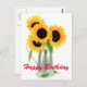 Bouquet de cuatro girasoles en metalizado cántaro (jarra) sobre fondo blanco.