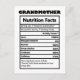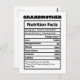 Tarjeta postal de datos nutricionales de abuela graciosa