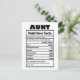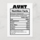 Tarjeta postal de datos nutricionales de la tía graciosa