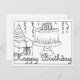 Tarjeta postal de dibujo lineal de cumpleaños feli