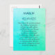 Hermosa tarjeta postal personalizada con tema de Aquamarina piedra de nacimiento de marzo. El poema describe las propiedades metafísicas del cristal de Aquamarina.