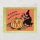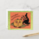 Una servilleta vintage de Halloween fue la inspiración para esta postal de vacaciones. La bruja espeluznante, portadora de farolillos y la alarmada linterna de Jack-o-lantern traerán tus saludos de Halloween o la invitación de fiesta a tu familia y amigos con un estilo vintage.