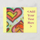 Los corazones amarillos, melocotones y naranjas forman dos corazones concéntricos deslizándose hacia la otra punta a la punta. Los puntos de color amarillo pálido son como el confeti entre los corazones. La pintura acuarela tiene una capa clara de oro y rosa encima. Personaliza esta postal con tu propio texto e imágenes.