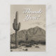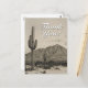 Este diseño de tarjeta postal de agradecimiento con aspecto vintage presenta el mensaje "¡Gracias!", junto con una representación de una escena del desierto con cactus y una montaña. La parte posterior incluye un mensaje personalizado de agradecimiento. Tarjetas postales como esta podrían usarse para enviar mensajes de gratitud a personas que han hecho algo especial.