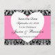 Tarjeta Postal de Fecha de Guarda de Damasco Negro Blanco Rosa 3. Este diseño de damasco es una forma elegante de enviar sus anuncios de fecha de guarda